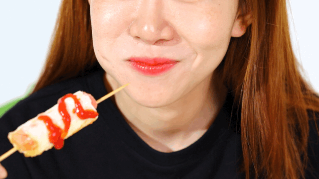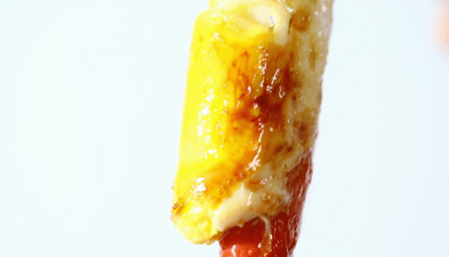 不一会,包裹着火腿肠的鸡蛋卷就会自己升上来啦!