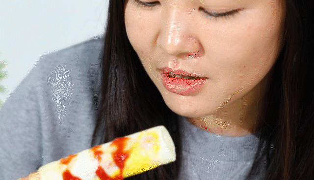 挤了一些番茄酱,迫不及待就往嘴里塞。