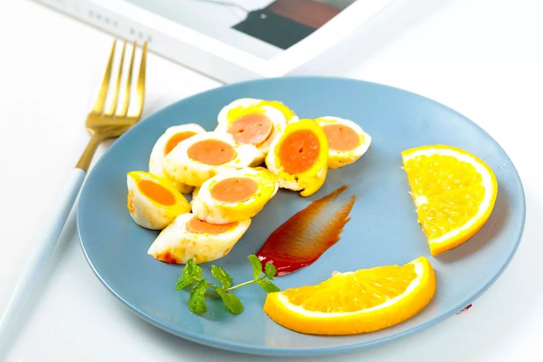 金黄焦香的鸡蛋里还包裹着一根烤香肠,看着就想吃!