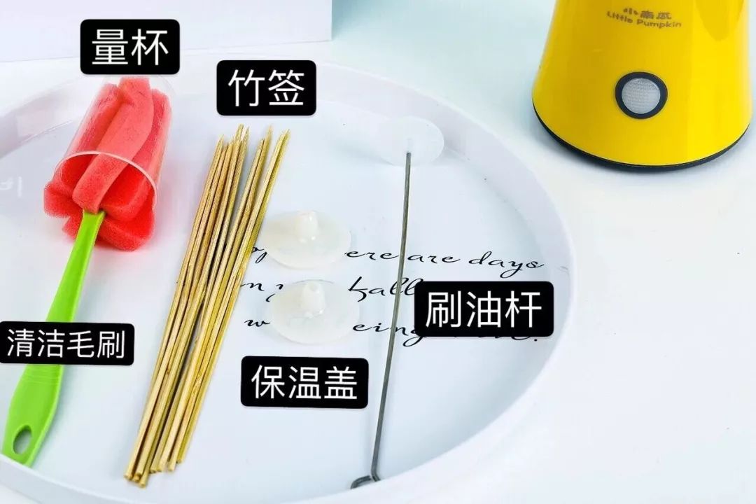 这个是送的礼包——里面有刷油杆、竹签、保温盖、量杯还有清洁毛刷。
