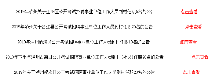 为推进乡村振兴和脱贫攻坚工作,加强江阳区基层干部队伍建设,江阳区面向社会公开考试招聘5名事业单位工作人员,聘用后须到村(社区)担任党组织书记或副书记不少于3年,任职期间按照江阳区有关规定进行管理考核,服务期满考核合格后回编制所在单位统一安排工作。现将有关事项公告如下:
