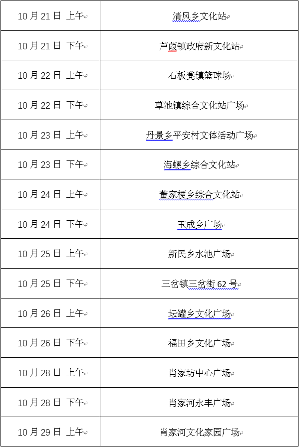 “走基层”文化惠民活动时间安排