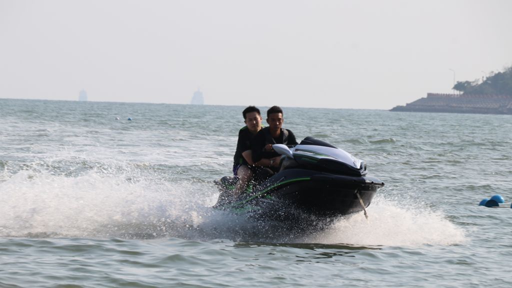 除了陆上两轮摩托试驾,川崎还拿出了自家的摩托艇让摩友们试乘试驾,骑上摩托艇在一望无际的海面上乘风破浪,享受着清爽的海风和打在身上凉爽的浪花,此时只有用自己的高声呐喊,才能表达内心的愉悦。