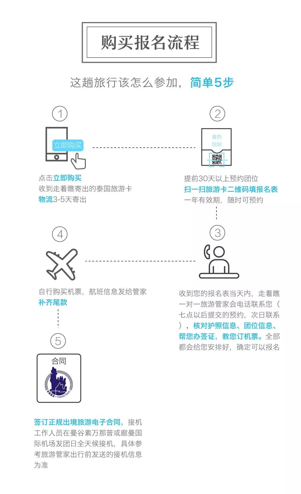 报名后有一对一旅行管家服务全权代办,订机票、办护照,轻松几步就能搞定。签证也只需将相关的材料发给管家即可。报名后曼谷接送机、当地服务管家都会全部安排好。