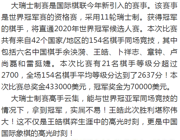 黑龙江省国际象棋棋手王皓勇夺大瑞士制赛冠军!