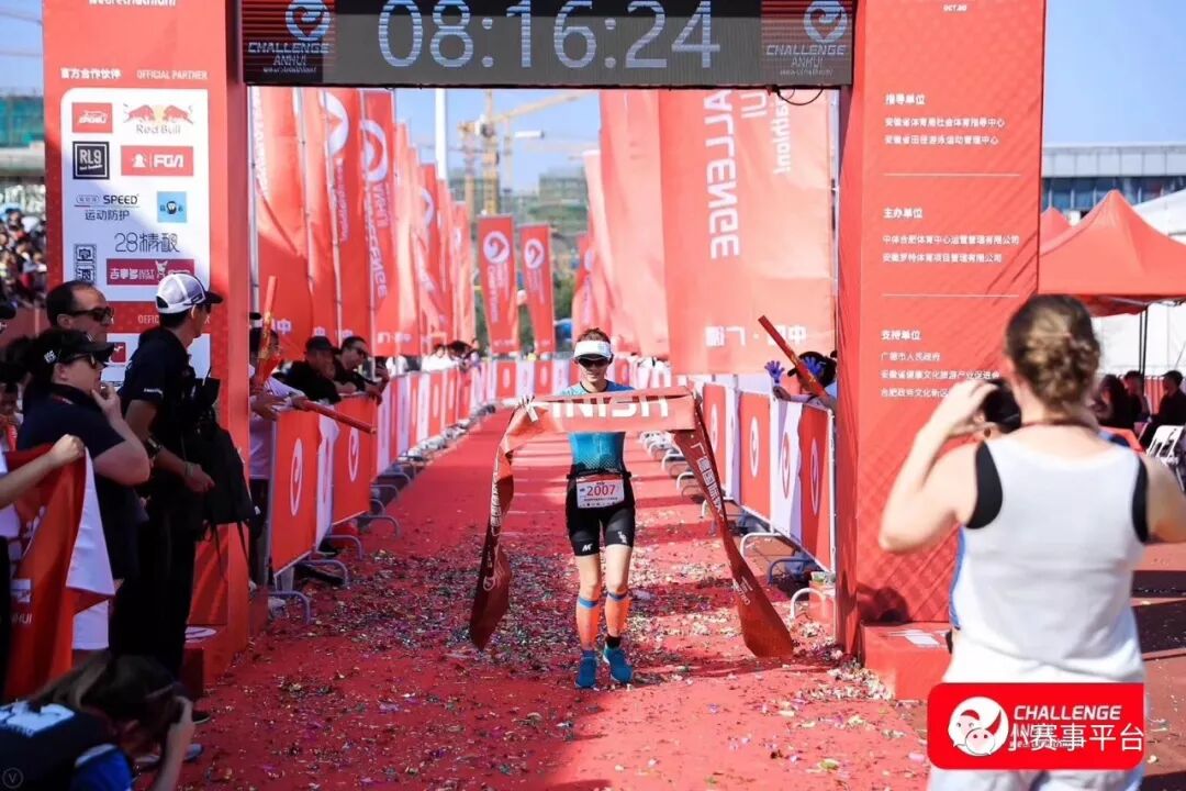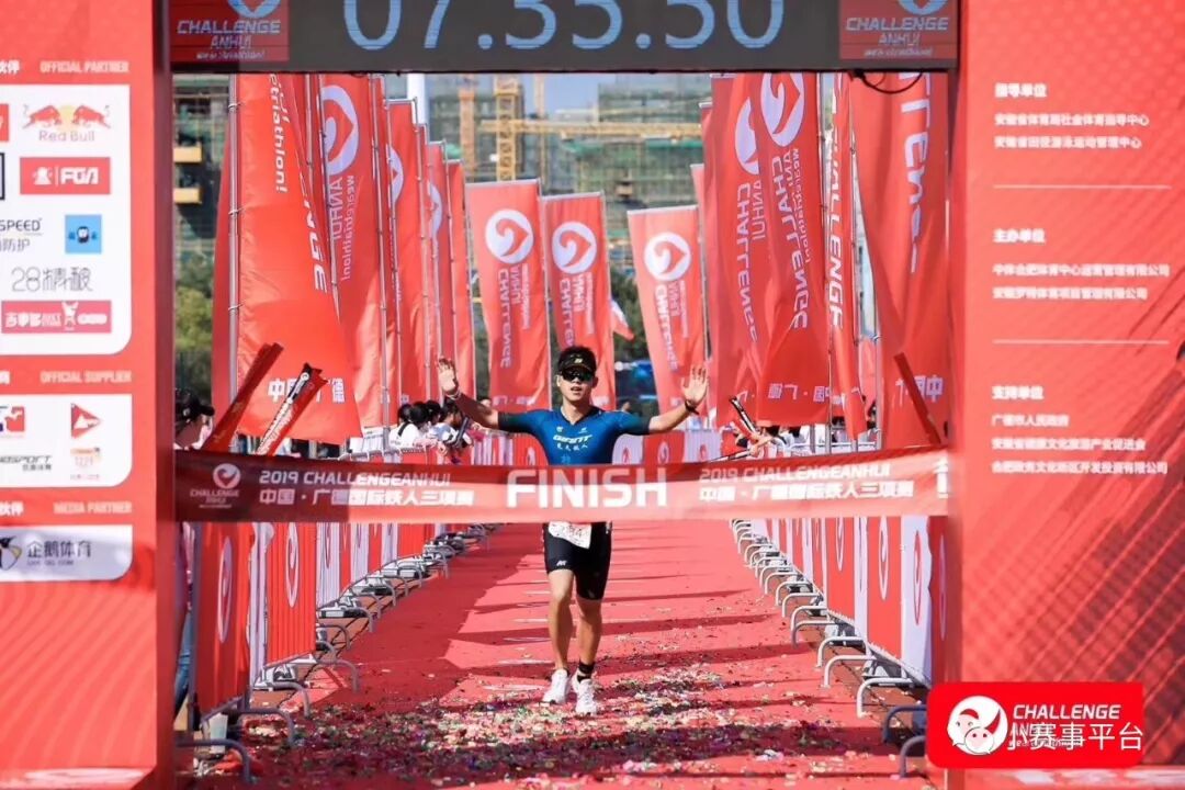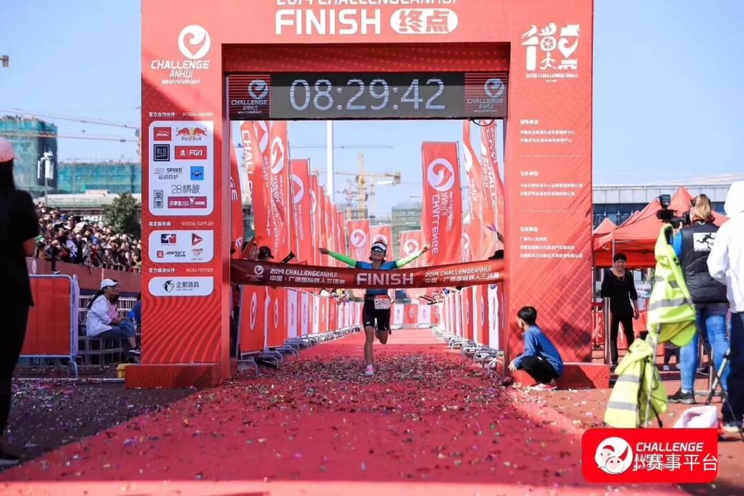 最终,本场高规格、高水准的超长距离铁三赛,赢得了选手和观众的一致好评,为CHALLENGEFAMILY 在中国的布局打响头阵。2019 CHALLENGEANHUI ,无疑是CHALLENGEFAMILY 在全球市场崭新的开篇,我们更期待今后在中国,有更多CHALLENGEFAMILY 大铁226的传奇由我们共同续写。▼ 来自澳大利亚的职业选手Levi Maxwell 第一个冲过226终点线,按CHALLENGEFAMILY 惯例,巨大杯啤酒在终点等他。