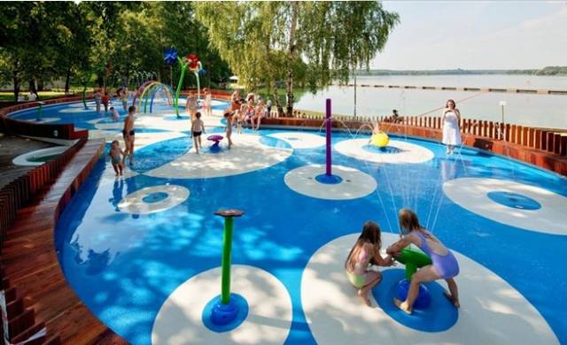 水体设计一般主要采用自然式,自然的岸线和驳岸对于各种年龄的孩子来说都是可以训练动手操作能力的环境,水不能过深,按年龄或身高设不同深浅(20cm-50cm)的水池,以确保儿童的安全。沙地是儿童锻炼塑造能力以及耐力等的重要场地,往往与水体相结合。