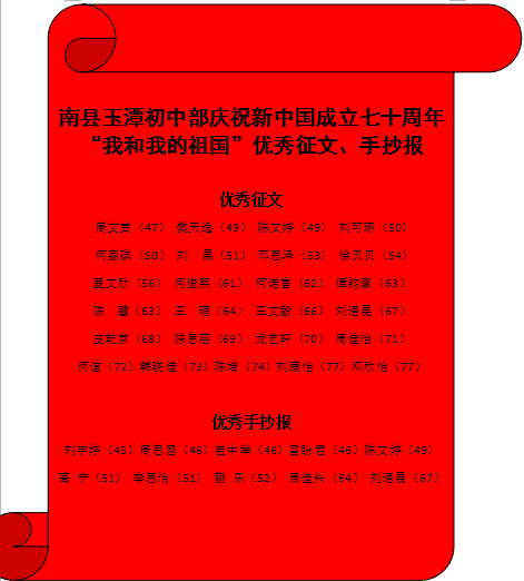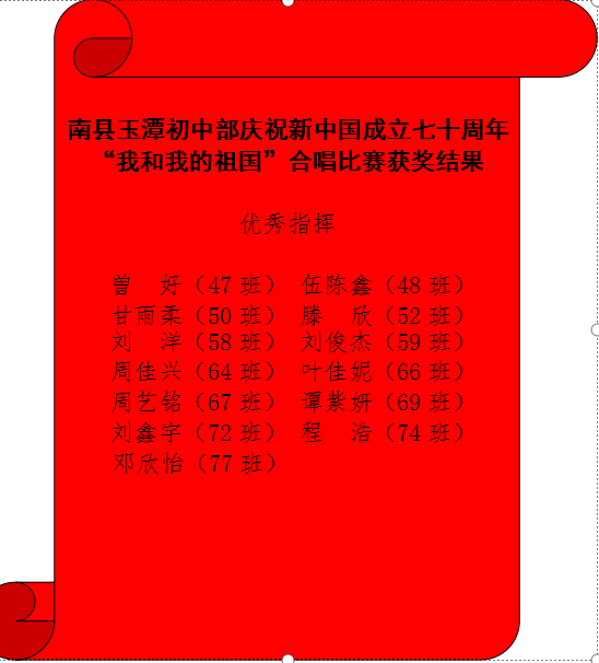 “我和我的祖国”庆祝新中国成立70周年暨南县玉潭学校初中部首届合唱比赛开幕式在学校大礼堂隆重举行。担任本次大赛的评委有:
