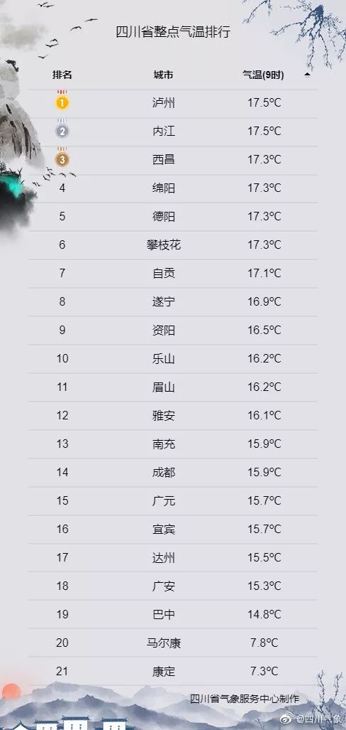 盆地各市阴天有小雨,其中巴中、达州、南充、广安、遂宁、资阳、泸州、乐山、眉山、雅安、成都11市的部分地方有中雨,局部大雨;