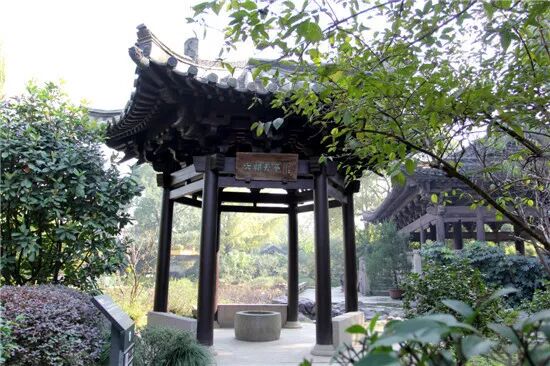 园中有一处别致的景点,叫做六朝井亭,有多处唐、五代、宋、明、清的亭阁、砖井、池塘和假山等建筑遗址,是沈园悠久历史的实物见证。"六朝井亭"的亭内有一口古井,在井亭中间可以望到天空,它的亭顶中空,可以让井接受雨水,象征着古人覆水欲收的意愿;而亭顶中空,还可以使亭下人感受到阳光,这就象征着古人向往婚姻自由光明的愿望。