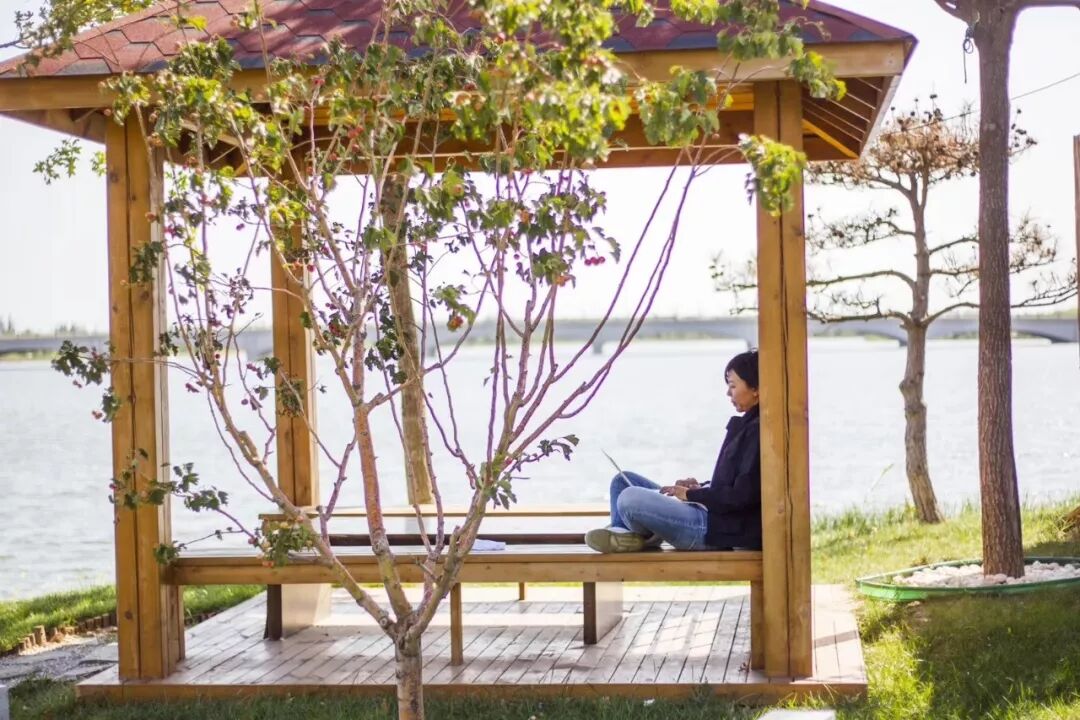 一汪池水、一座小桥一条曲径通向一座凉亭目光所及之处是一片湖泊或盘坐冥思、或促膝谈心这里为小院住客提供了一个相遇相识相交的机会