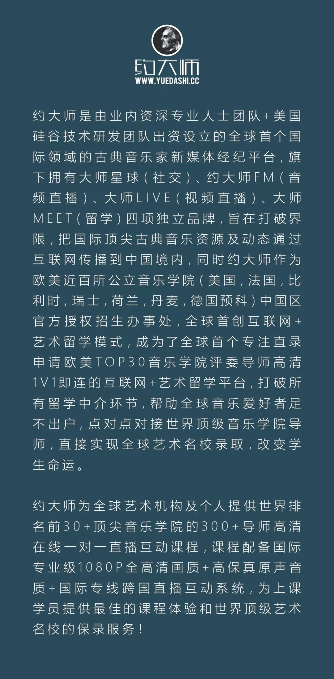 约大师,全球首家互联网+艺术留学直录申请平台