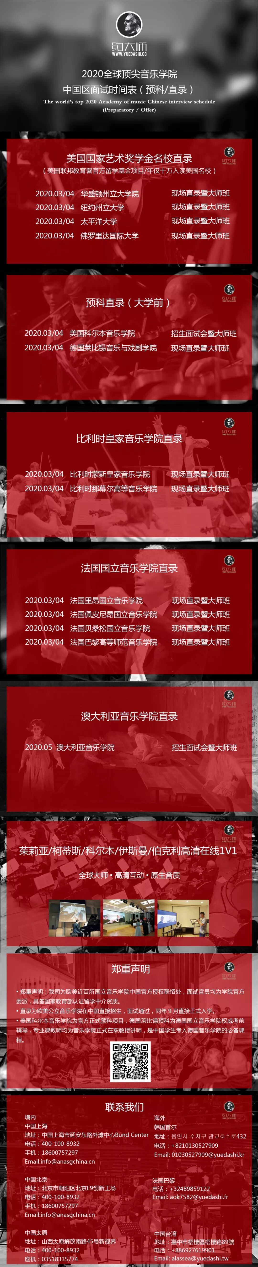 2020全球音乐学院面试时间表