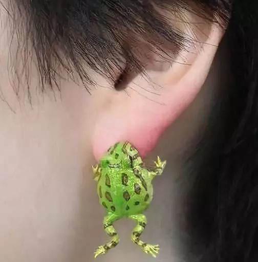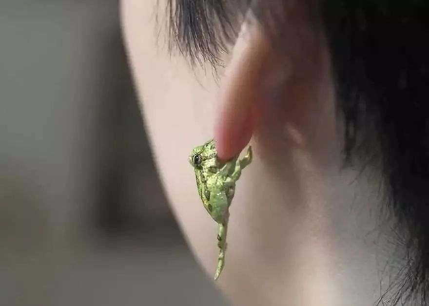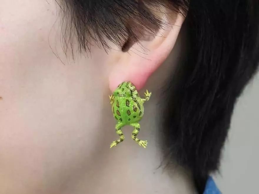 这是日本生物饰品作家制作的青蛙咬耳耳环,摘下来长这样: