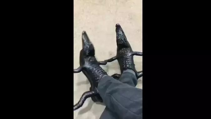 鳄鱼皮鞋=鳄鱼形状的皮鞋