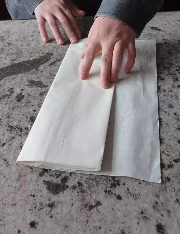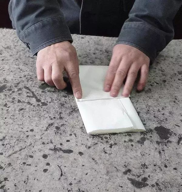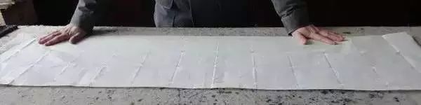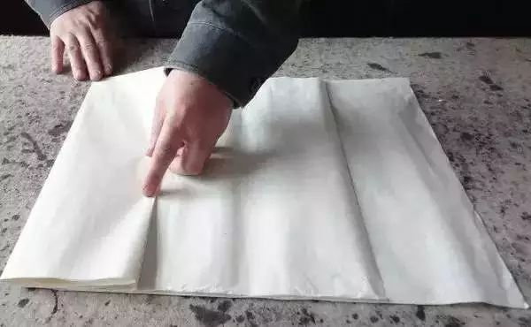 先竖折三等分,但左右留出边线(即:留适当的空白);再横折六等分(先対折,再三等分折,上、下也要留出边线,即:“天地”留适当的空白)。第一、二行各6个字,第三行2个字,接下的空格落款。