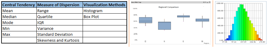 连续型变量(Continuous Variable):对于连续型变量我们需要知道这个变量的中心(central tendency)和展布(spread or dispersion),下面是描述变量中心还有展布的指标量,以及用什么图来进行可视化。