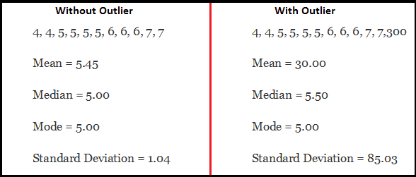 在右上图,因为有了离群值300,而导致标准差,均值什么的都产生了很大变化。这会完全改变你的统计估计。