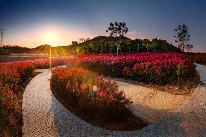 你也可以骑着单车,到山水园不远处的十里长山路,道路沿线种有香樟、早樱、桂花、马尾松、红枫等常绿树种,以小菊花为点缀。