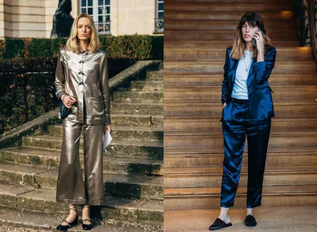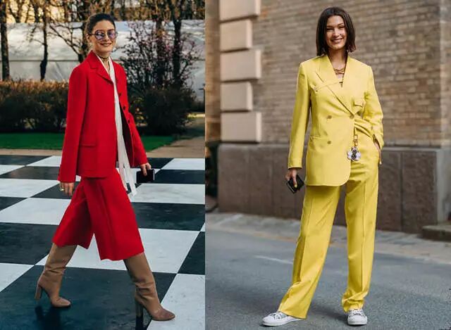 如果你想要在聚会的众多人群中脱颖而出,选择亮色的西装套装准没错。新年到来,一套红色的缎面西装套装,搭配飘逸的白色丝巾,是参加各种场合的最佳选择。如果不想太高调,可以选择亮黄色缎面西装,休闲的版型和个性的设计搭配帆布鞋也是相当时髦。