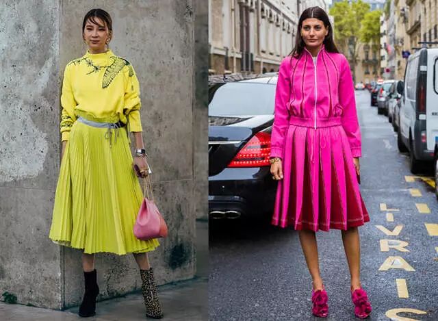 很多女生对裙子有着无限的热爱,那完全可以选择裙子套装,出门约会最适合。肤色较黄的女生可以选择亮黄色套装,可以衬托肤色,印花上衣搭配百褶长裙,飘逸感十足。肤色较白的女生就可以选择玫红色套装,会更显白,而且玫红色的百褶裙还有一丝女人味,魅力十足。