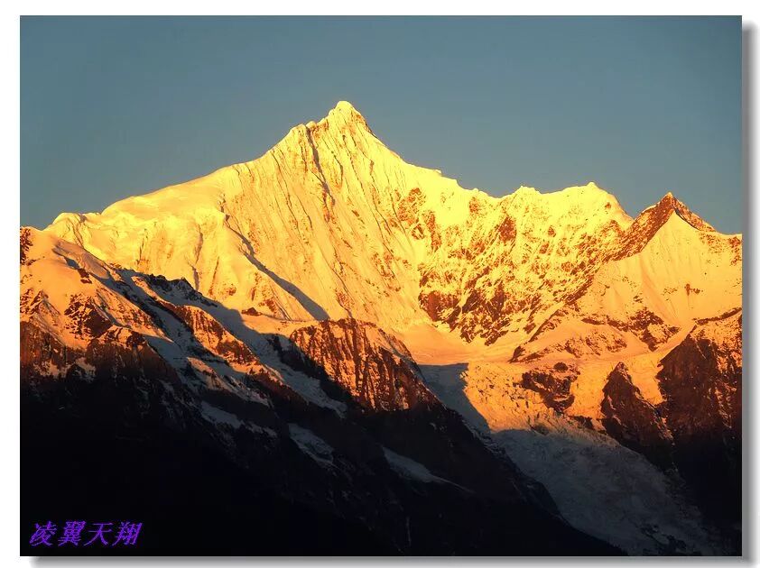 梅里雪山,位于迪庆藏区德钦县境内,为云南与西藏的界山。主峰卡瓦格博海拔6740米,为云南第一高峰,至今无人征服。峰型有如一座雄壮高耸的金字塔,时隐时现的云海更为雪山批上了一层神秘的面纱。1991年,中日联合登山队对主峰发起了冲击,遭遇大规模雪崩,所有队员全部遇难,长眠在了卡瓦格博。部分遗体于数年后被放牧的藏民在主峰另一侧的大冰板发现。被誉为雪山之神的卡瓦格博作为藏区八大神山之首,享誉世界。