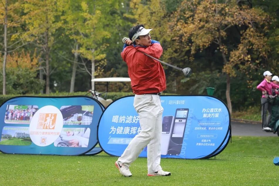 比赛的慈善洞设置在了B14洞,一杆进洞大奖设在了B11洞,一杆进洞大奖依然是龙福康海参胶原活性肽产品和鸣时达模拟器。