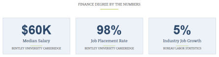 Bentley金融专业毕业生就业情况如下:l 平均收入:$60Kl 平均就业率:98%l 就业增长率:5%