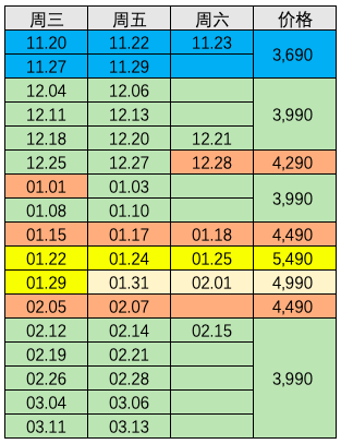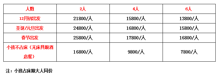 04:00起飞,9:05抵达,接机前往雪场,入住玫瑰庄园丽柏酒店5晚。