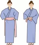 6浴衣的穿着方法披上浴衣后,先把左侧的大襟打开,将右侧的大襟盖住身体,然后再将左襟裹在右襟上包住身体 。