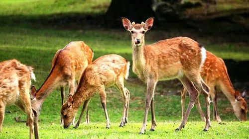 奈良人将鹿视为神的使者,不许捕杀,不许侵犯,因而梅花鹿不怕人,会跟游客讨要食物。
