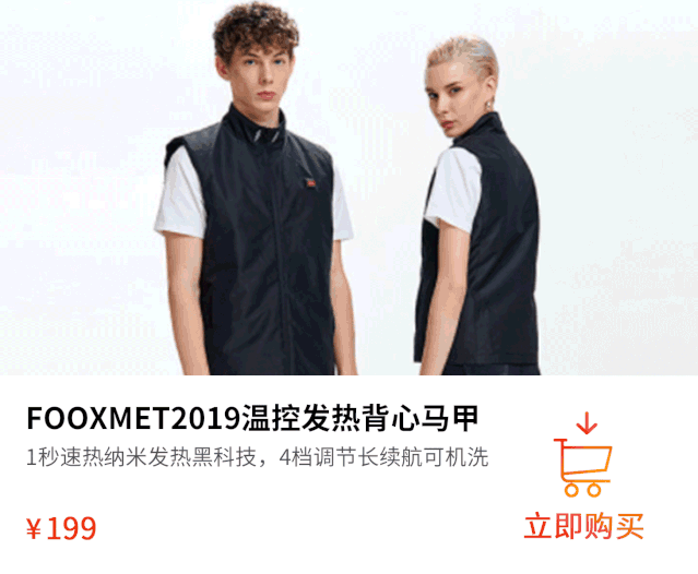 一款可随意调节温度,-20℃都不怕,让你瞬间回到春天的黑科技外套——风谜智能温控发热背心,穿上它让你随时保持适宜的温度。