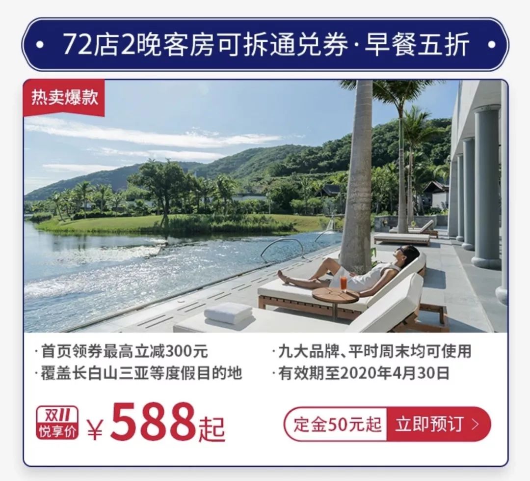 除了2888元的价格,凯悦还有588元、988元、1288元、1688元2晚房晚兑换券,全国72店可用,像是坐落于6万公顷竹林绿洲中的阿丽拉安吉、适合亲子度假三亚海棠湾君悦、饱览浦江美景的上海金茂君悦......通通都有,照顾不同住宿需求的朋友!
