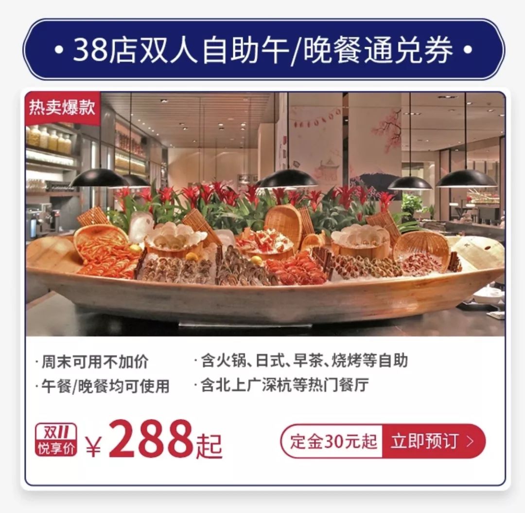 餐饮一直是凯悦酒店集团引以为豪的强项,Hyatt旗下的自助餐品质也都普遍较高。在现在的星级自助餐随便都要人均200+元的情况下,凯悦酒店双11推出了最低288元/2位的自助餐券!吃货们别走宝!