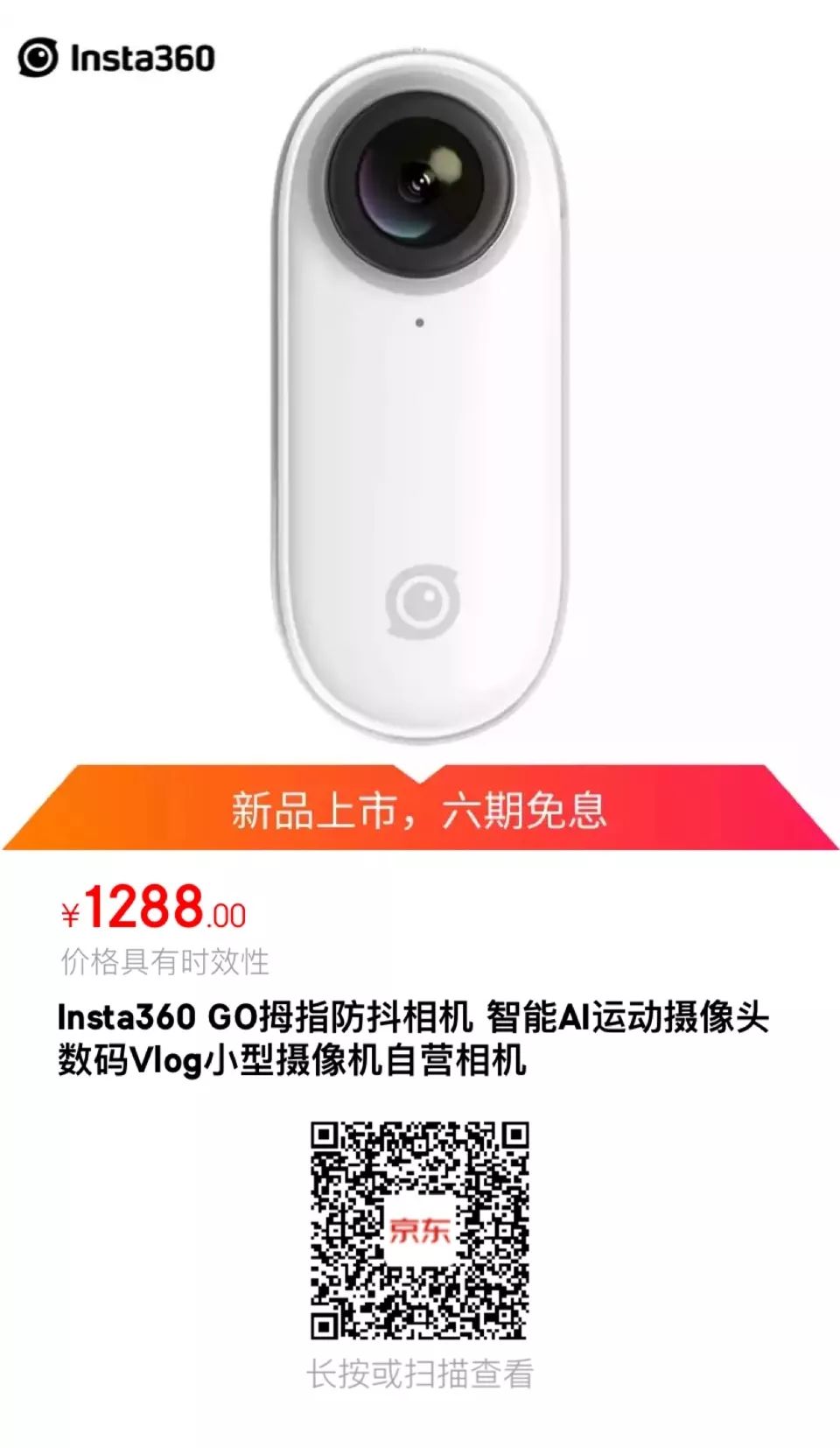 “短视频神器” Insta360 GO,机身轻便,尺寸仅为拇指大小,让你可以随时随地轻松记录生活。搭载Insta360独创的FlowState防抖科技,并创新加入了AI剪辑功能一键出片。