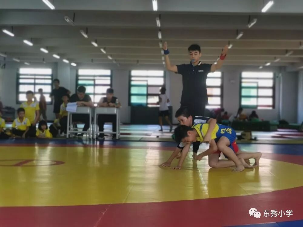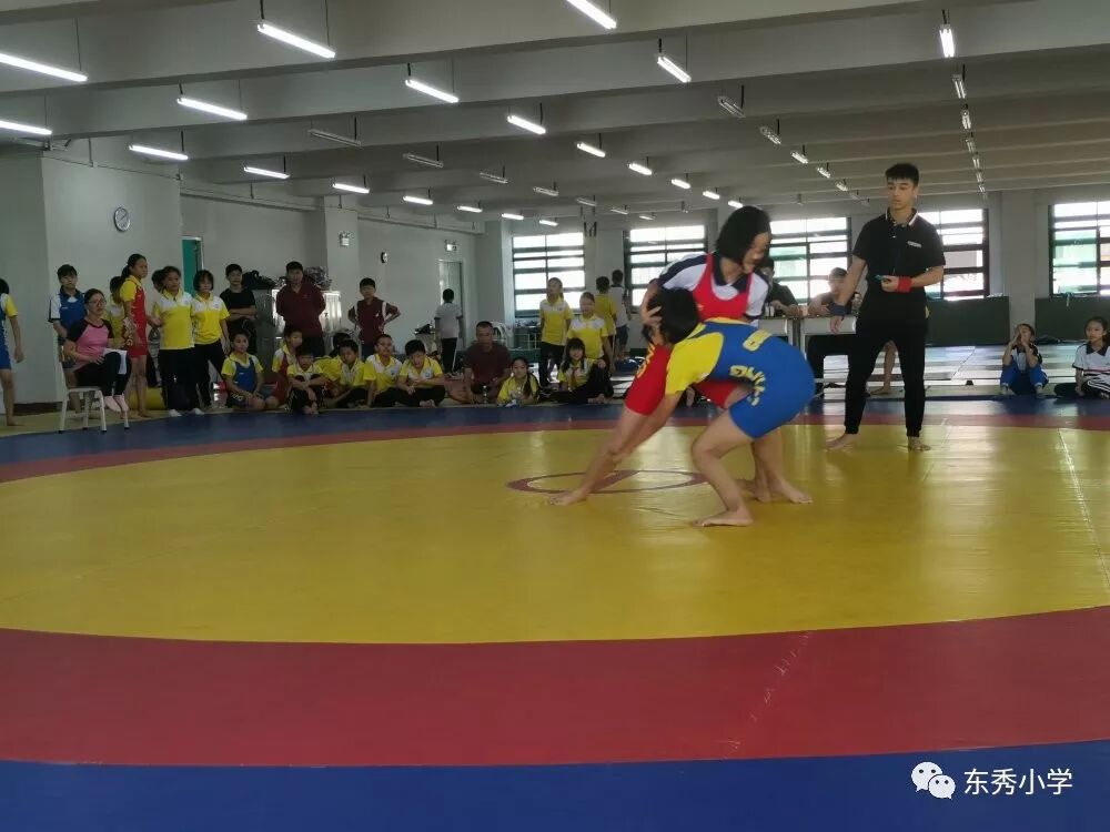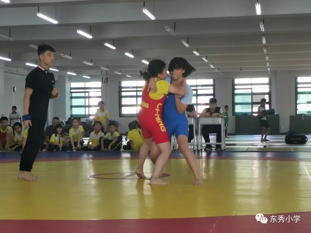 摔跤是世界上最早的竞技体育运动之一,在赛场上,两名运动员徒手相搏,按一定的规则,以各种技术、技巧和方法摔倒对手,目前也是奥运会正式比赛项目。虽然摔跤是一个小众项目,但在南海区开展这一项目的中小学不在少数。本次青少年摔跤锦标赛,我校派出摔跤精英参赛。本次比赛根据运动员体重级别设置分组,按照国家体育总局审定的摔跤规则执行。比赛在专业摔跤垫上进行,随着裁判口令一响,便和对手缠斗在一起,不断试探对方,寻求最好的攻击机会。场边,带队的老师们纷纷来到赛场观看,他们认真地关注着场上局势,不停地为孩子门加油。通过体育科组和参赛同学们的共同努力,拿到了佛山市南海区青少年摔跤锦标赛团体总分第一名。