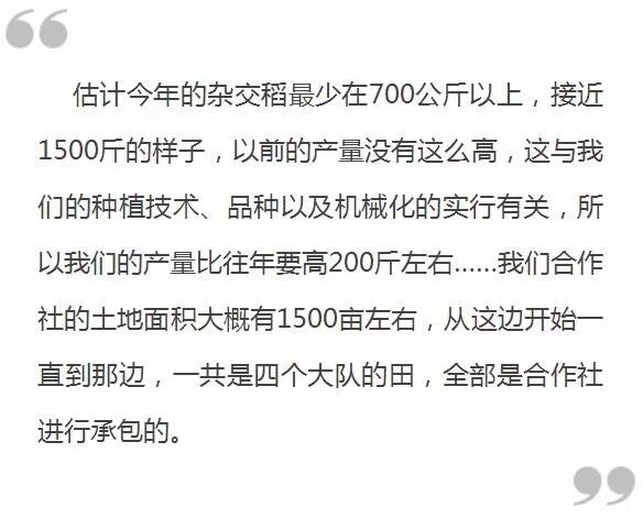 戴埠镇姚墅村生产队长吴波表示: 以前群众在自己种田的时候,亩产在1100斤~1200斤之间,另外很多农事要请别人来做,去除成本以后,亩产收入在400元左右,经过合作社统一收购回来之后,我们进行统一的管理,每家农户我们给他的租金在700元左右,平时空闲时,农户也会帮合作社做工,现在每亩平均要比以前多400元到500元的收入。