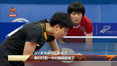 八一乒乓球队队员木子:单打打到一半时脚就起泡了,中间有一度感觉自己都要输了,感觉再扛一扛,不想输。