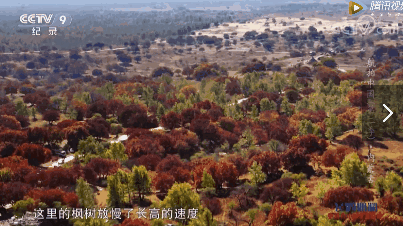 告别秋季科尔沁沙漠,枫叶五彩斑斓;