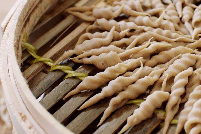 所以,去内蒙古没呆在草原的朋友们,可以试试这些内蒙古地道的家常菜,毕竟小只烤全羊都要两三千,假期七八天,你也不能天天吃啊。 即便肉量再大,一碰见羊肉烧卖,内蒙古也吃不了几个。可别小瞧内蒙的小烧卖,实在太管饱了。 作为中国烧卖的鼻祖,羊肉烧卖被山西商人带到北京,然后传到全中国。 每个城市的早餐店和茶楼都有自家的烧卖,江南烧卖的糯米馅,广东烧卖的海鲜馅…… 但,谁都没有呼和浩特的羊肉烧卖猛。 清晨五点,呼市的烧卖店早已人头攒动,人民的生活从一两烧卖开始。 趁热咬开一颗烧卖,河套面粉裹着细腻但不松散的四子王旗羊肉,羊肉里夹杂着色清味足的毕克齐大葱,葱里拌着香气四溢的武川胡麻油。