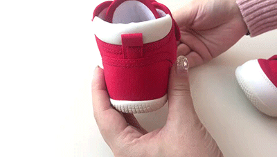 学步鞋的鞋面材质一定要柔软,一方面不会磨脚,另一方面在宝宝脚部弯曲的时候,鞋面不会硌到宝宝。