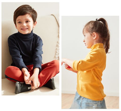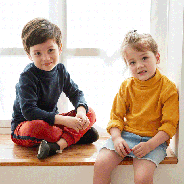 这件高领打底衫,看上去吧我还没觉得多惊艳,但是给孩子试穿后却觉得,版型也太好了吧。