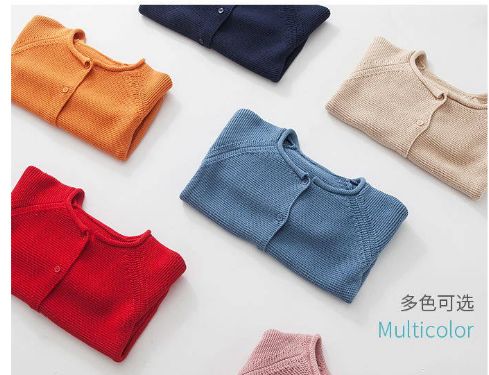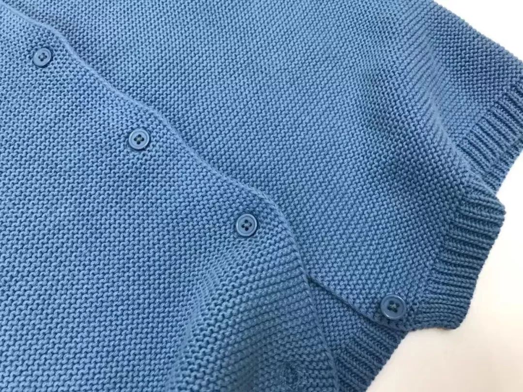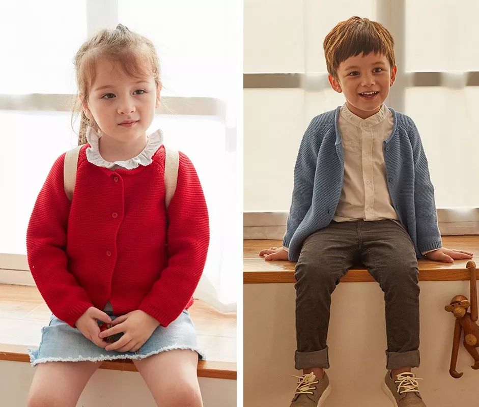 开衫系扣的款式方便孩子穿脱。当然也可以不系扣,就那么随性一搭,也非常好看呢。