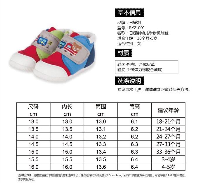 这鞋子共3个颜色,红色、深蓝色、混色,非常百搭,适合18个月~5岁宝宝。