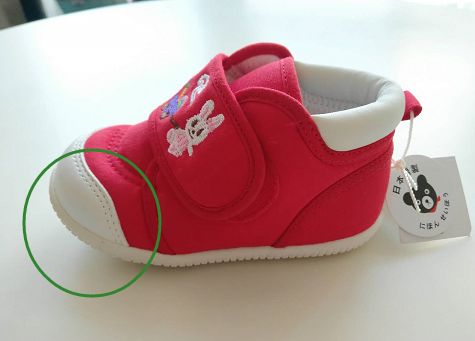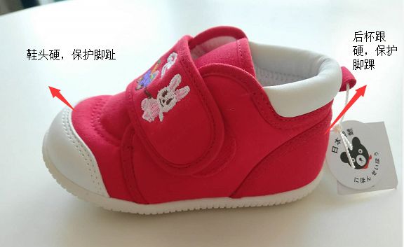 宝宝在走路初期,走的还不是很稳,很容易踢到东西或者碰到硬物,因此,鞋头处包裹脚趾的地方一定要硬一些,这样可以很好的保护他们稚嫩的脚趾。