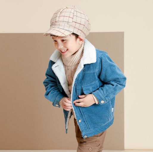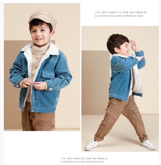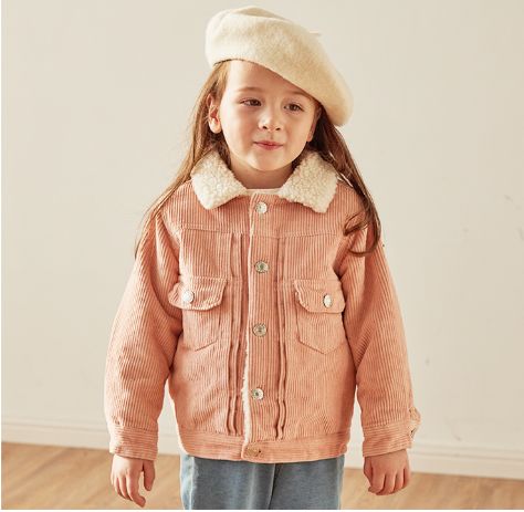 一款超级保暖的加绒灯芯绒外套,翻领加上大毛领的装饰吸睛亮眼。