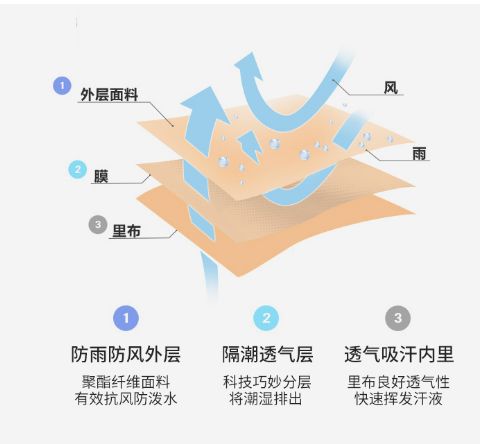 中间有隔潮透气层,这种科技巧妙的分层能将衣服的潮湿排出。