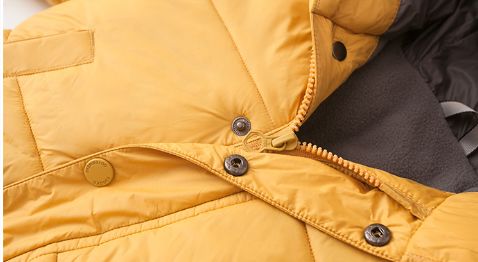特别提醒大家一点,翻领是厚厚的加绒,这点妈妈要好好利用。天很冷的时候,可以把领子立起来,外面系上围脖,这样孩子的脖子可以很好的保暖。虽说,没有那么美观好看,但在冬天“保暖”才是我们终极目标。