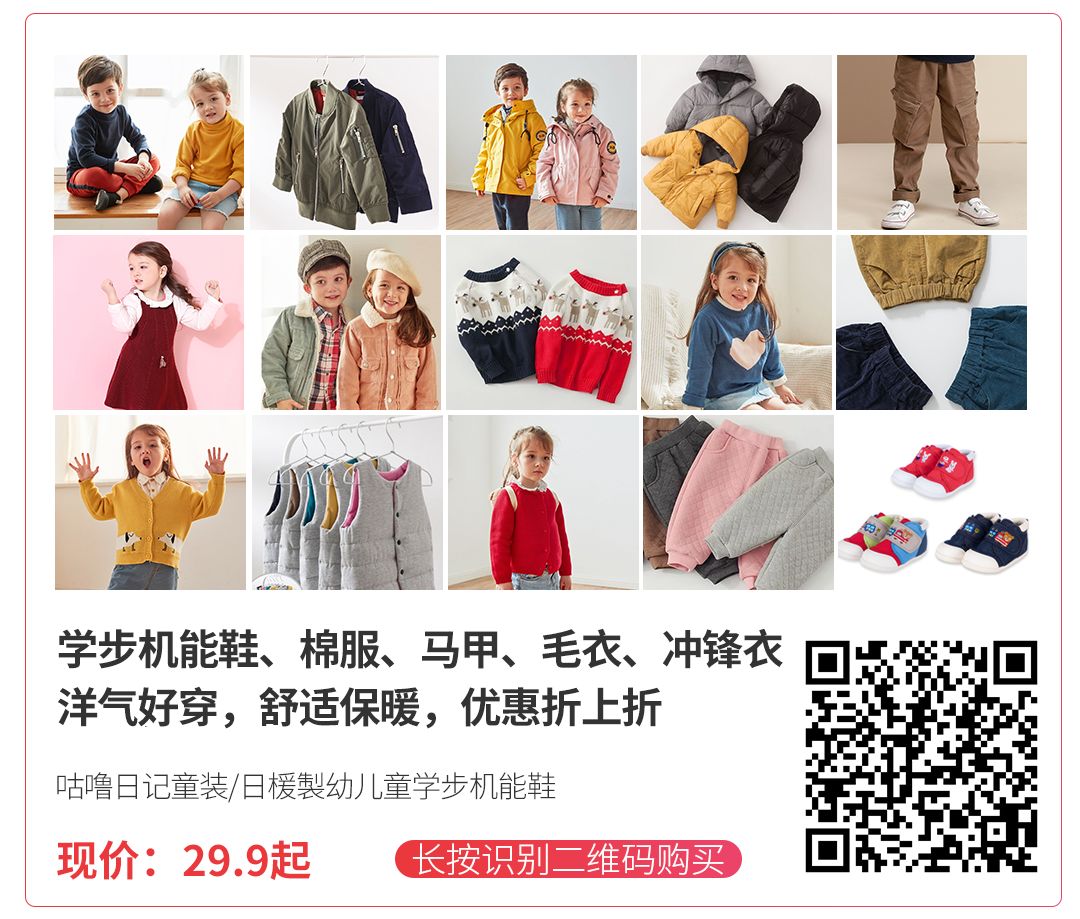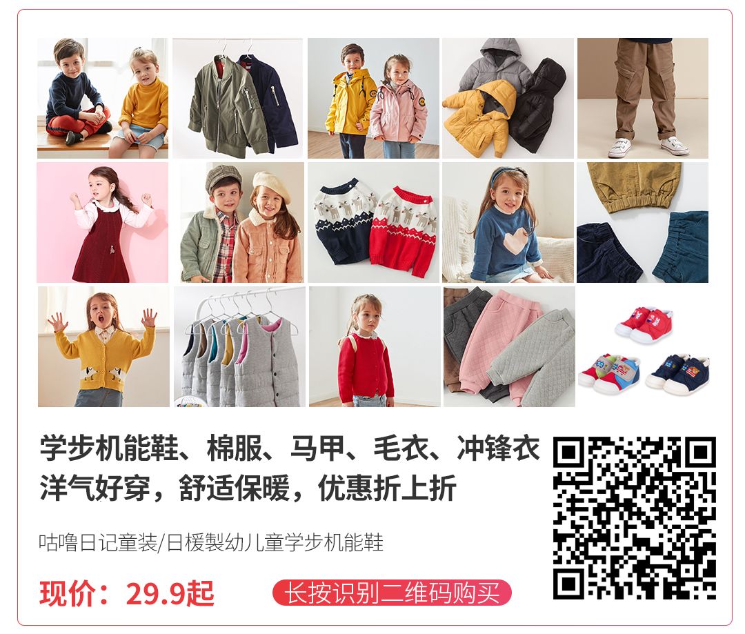 1、咕噜日记童装 秋冬专场 | 咕噜日记童装是我们的老朋友了,春夏秋冬都分享开团过,性价比非常高,就单说冬天,从头到脚,从里到外不到三百块钱。衣服洋气、舒适好穿、怎么穿都很吸睛,真的没有不入的理由。这次带来了20多款,棉服、马甲、毛衣、背心、外套、加绒休闲卫裤等,价格可以说非常优惠,zui 低价29.9元起,在团价的基础上,再给大家优惠,2件9.5折,4件9折,6件以上打8.5折,这样算下来几乎成本价给大家,so 这次活动大家可别错过了~
