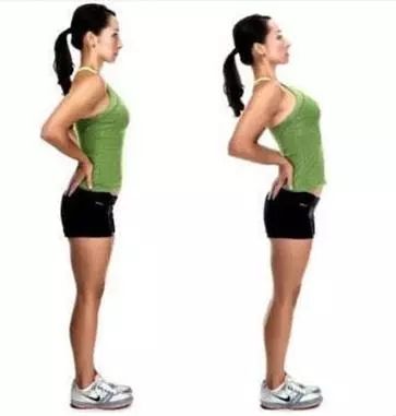 体后伸练习: 身体直立,双腿分开,两足同肩宽。双手托扶于臀部或腰间,上体尽量伸展后倾,并可轻轻震颤,以加大伸展程度。维持1-2分钟后还原,重复3-5次。